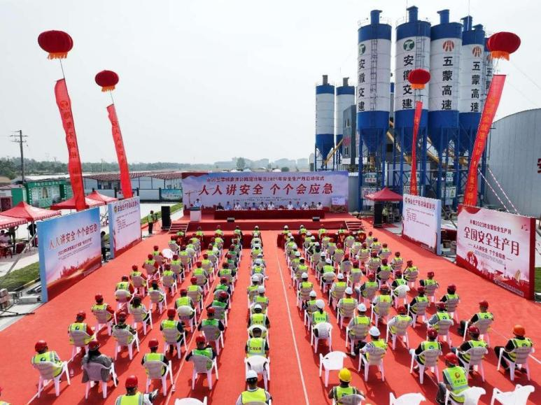 2023年6月1日,五蒙高速公司在固鎮(zhèn)縣TJ-04標(biāo)拌合場站內(nèi)舉辦2023年安全生產(chǎn)月活動(dòng)啟動(dòng)儀式,活動(dòng)主題為“人人講安全、個(gè)個(gè)會(huì)應(yīng)急”。五蒙高速公司全體成員及各參建單位代表參加,市交通運(yùn)輸局、市交通質(zhì)監(jiān)大隊(duì)領(lǐng)導(dǎo)出席活動(dòng)。